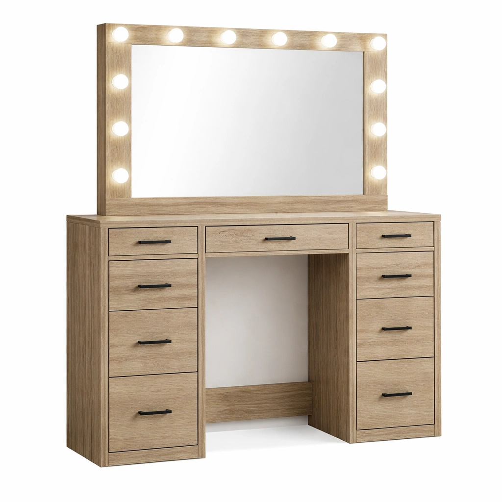 Tocador de madera con espejo y luces LED