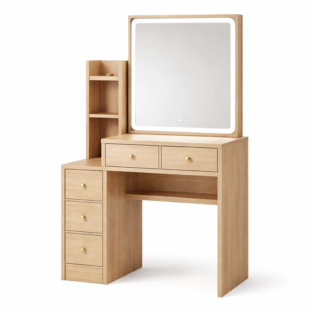 Características funcionales: Espejo LED integrado con control táctil. 5 cajones para almacenamiento.